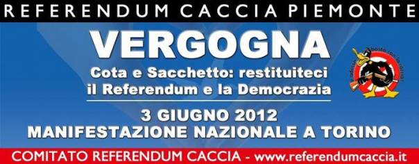 Con un atto liberticida e antidemocratico il Consiglio Regionale del Piemonte e la Giunta presieduta dal leghista Cota hanno abrogato la Legge sulla caccia, cancellando di fatto il Referendum regionale, fssato per il 3 giugno.