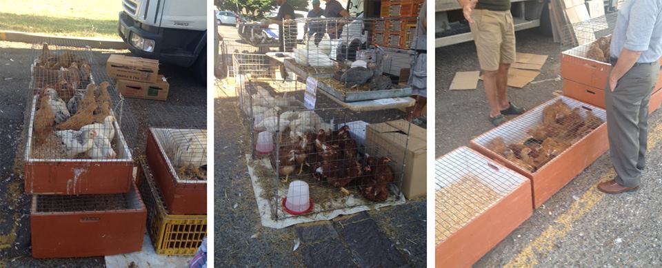Divulgo l’indignazione di una mia amica animalista riguardo alla pessima metodologia di vendita di “animali da alimentazione” adottata da un commerciante ogni giovedì mattina al mercato di Empoli, in provincia di Firenze. La ragazza già tempo fa aveva segnalato il sovraffollamento delle gabbie, per giunta sporche, dove vengono detenuti gli animali. Per un breve periodo il commerciante non era più stato presente al mercato. Questo giovedì però è tornato, e la situazione è sempre la stessa, come vi raccontiamo di seguito..