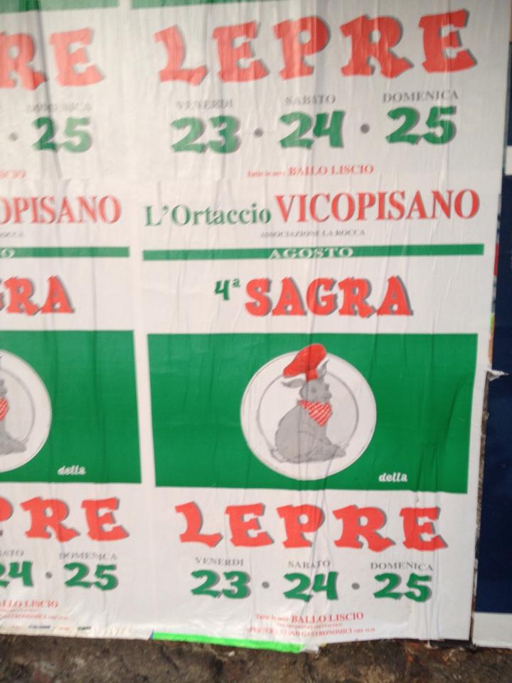 E’ questa l’idea che ha avuto il grafico pubblicitario ingaggiato dagli organizzatori della Sagra della Lepre di Vicopisano.