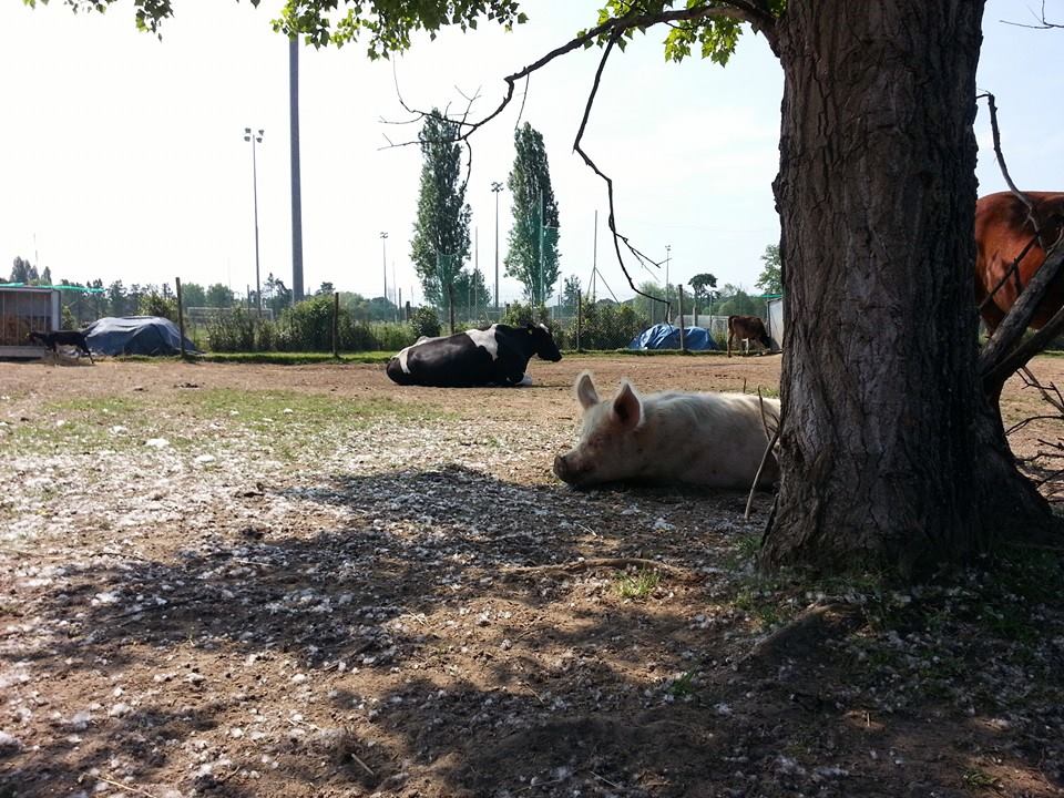“Come è possibile che da questo corpo venga estratta la carne?” mi sono chiesta mentre guardavo quel maialino di 6 mesi sdraiato a terra intento a godersi le coccole di tutti, all’ombra.