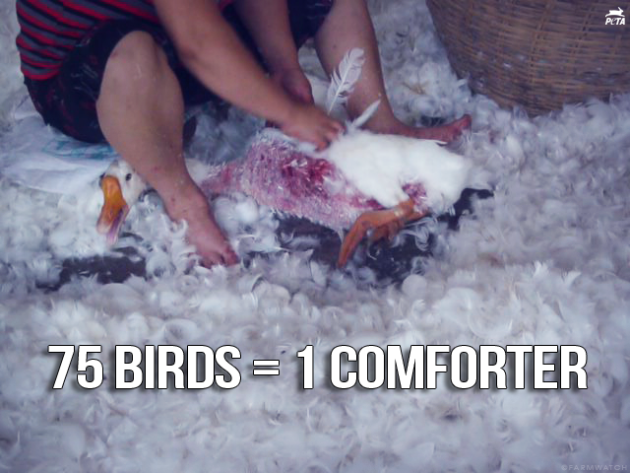 As you probably already know ( however you can see the picture above ) ducks are tortured by this cruel industry. Ducks suffer unbelievebly without their feathers.