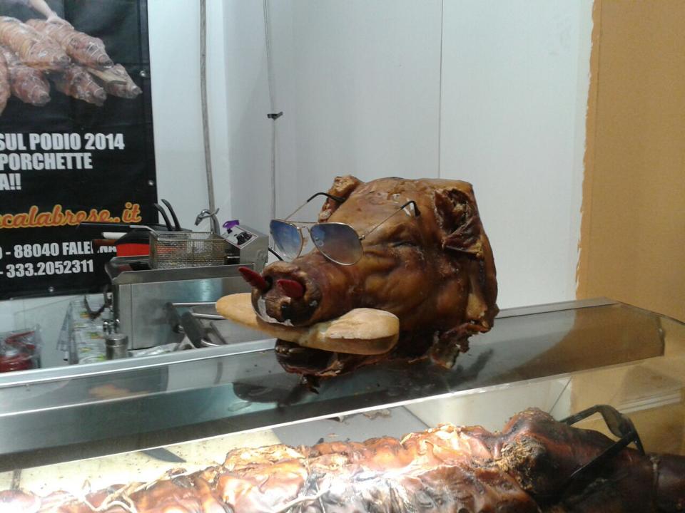 La trovata di pessimo gusto è stata idea dello stand dell’azienda “Porchetta Calabrese“.