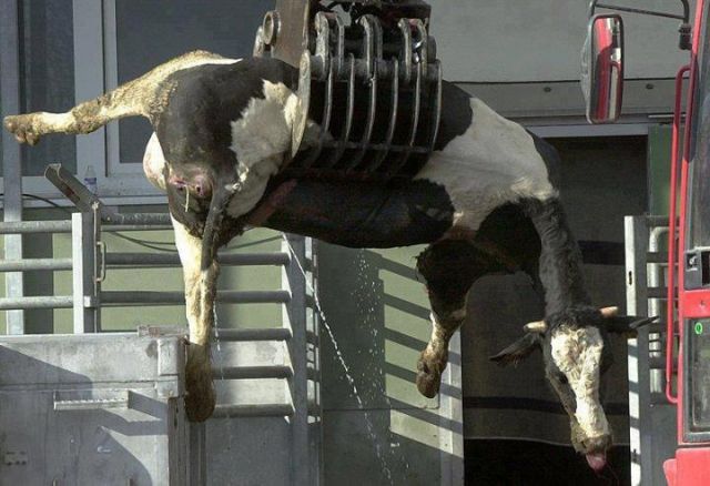 [ Dopo anni di sfruttamento e di gravidanze per produrre latte, le mucche vengono accompagnate adagio al macello poichè INUTILI ]