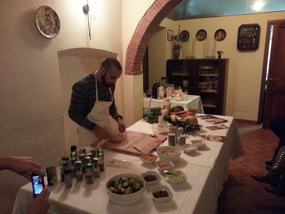 [ Gabriele Malucchi alle prese con l’auto-produzione di polpette vegetali al Corso di Cucina Vegan tenutosi al Ristorante Il Focolare di Montaione (FI) nel novembre 2014 ]