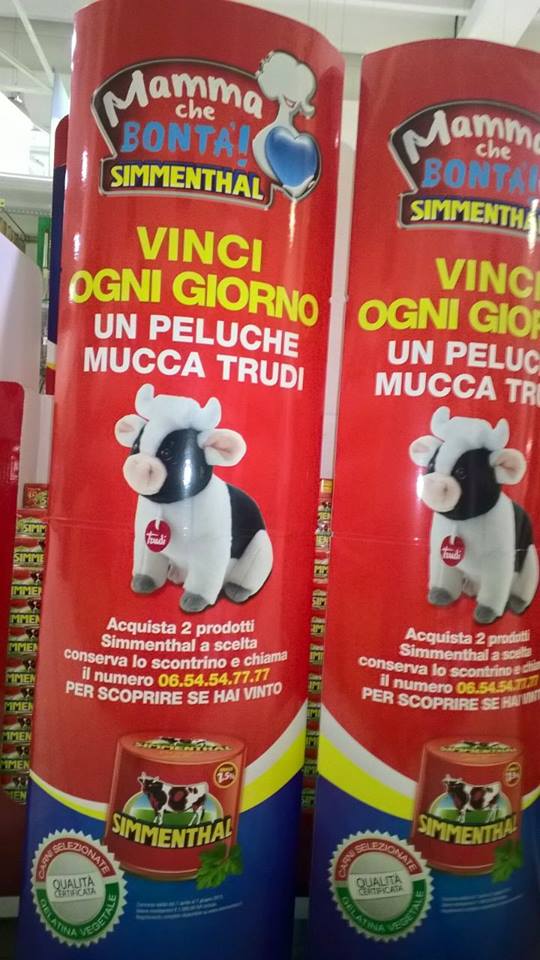 Come si può leggere dalle informazioni scritte sulle confezioni fotografate da un utente, ogni giorno si può vincere un peluche a forma di mucca firmato TRUDI acquistando due prodotti Simmenthal a scelta.