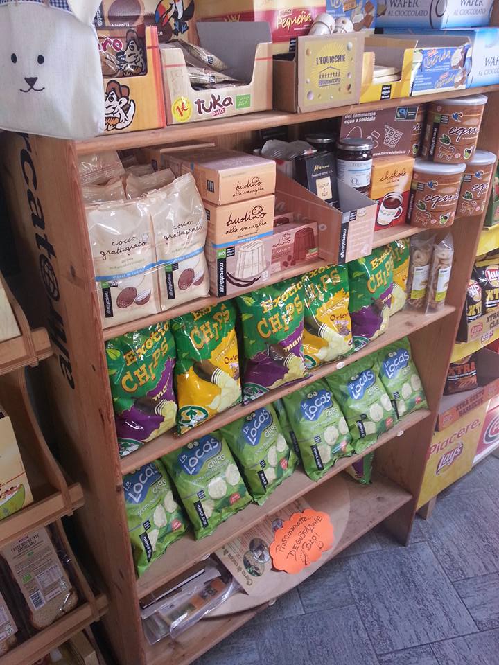 Nei giorni seguenti mentre tornavo nel locale per il solito gelato uno dei ragazzi che vi lavora, Pippo, mi ha informato della presenza dei cornetti al mattino e mi ha mostrato tutti gli espositori di alimenti e cosmetici equo solidali, bio, vegan cruelty free.