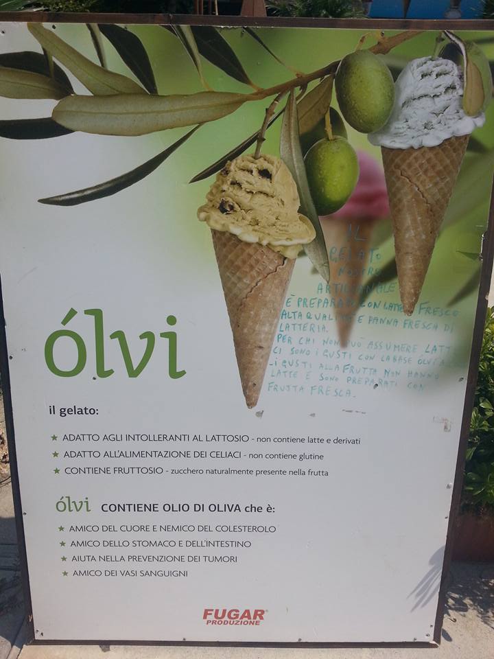 Una sera mentre ero sul lungomare ha conquistato la mia attenzione una scritta a pennarello su un cartellone raffigurante un gelato. Mi avvicino e leggo che in quel locale servivano gelato realizzato su base d’olio d’oliva senza latte. In pratica, gelato vegano!