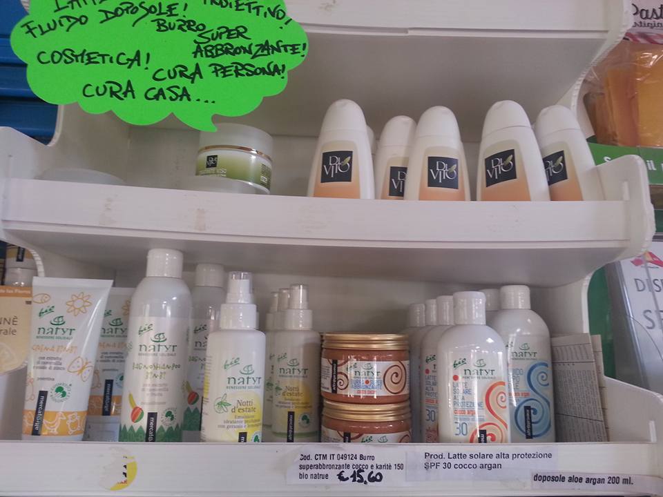 E’ stato piacevole scoprire che li l’acqua è pulita, ma lo è stato ancora di più trovare a pochi passi dal mare un lido fornitissimo di prodotti vegani, equo solidali e gluten free!