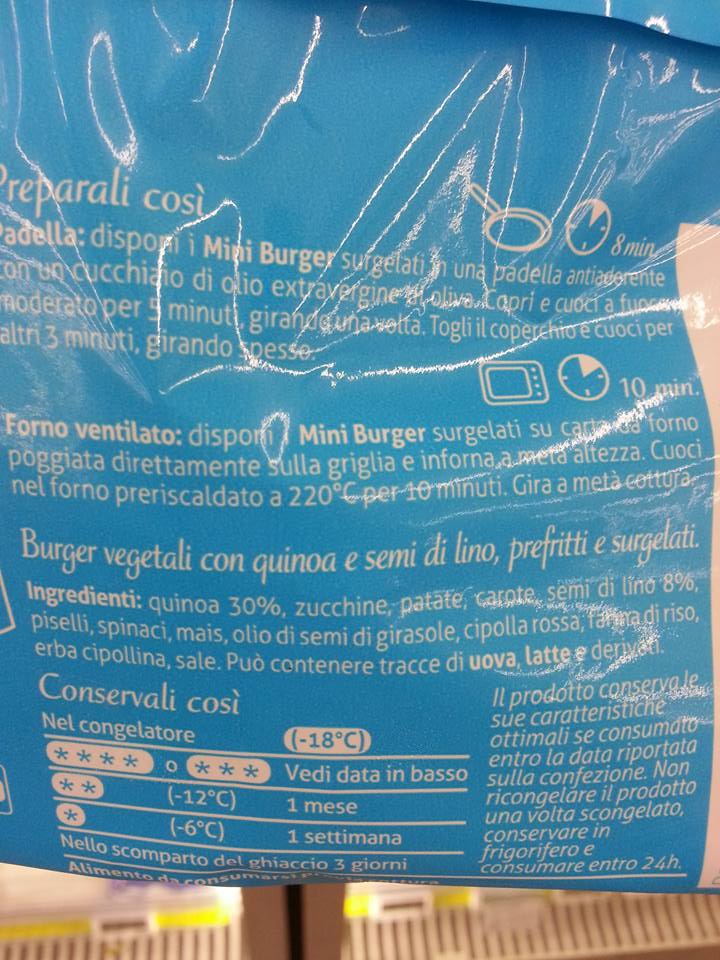 Tra le confezioni di verdura surgelata pronta da saltare in padella hanno catturato la mia attenzione i “Mini Burger Benessere” a marchio Orogel.