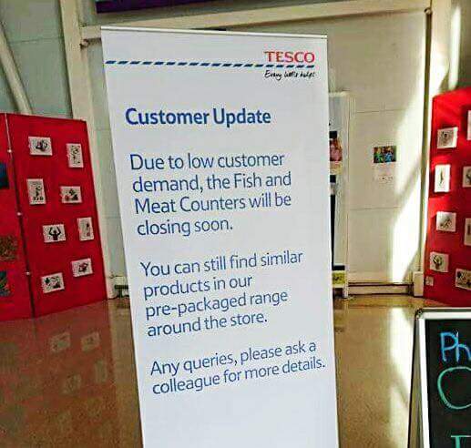 Ancora belle notizie dall’Inghilterra! Questa settimana attraverso il mio blog vi ho informati della chiusura imminente del reparto macelleria e pescheria nella filiale Tesco di Liverpool.