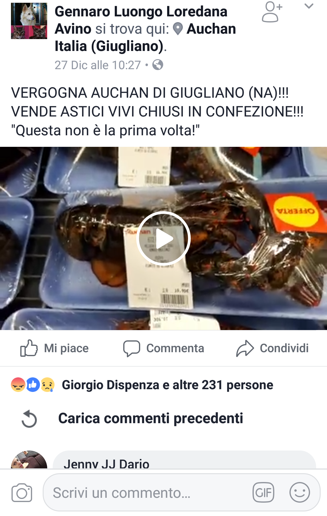 °°[Giugliano] Astici Vivi Sigillati dentro Vaschette nel Supermercato Auchan°°