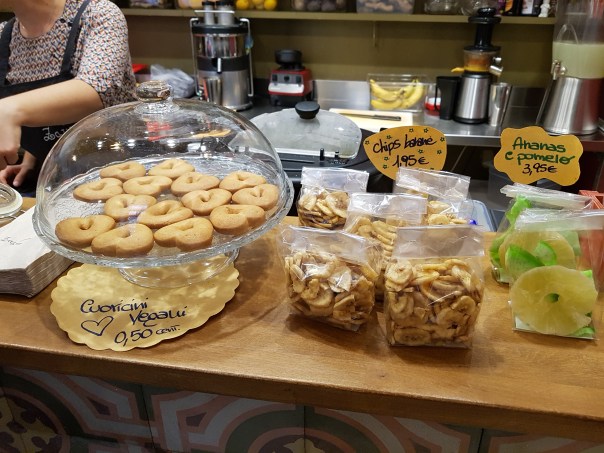Ed ecco cosa ho trovato: un locale molto grazioso con un ampio bancone e tanta frutta, verdura e ortaggi.