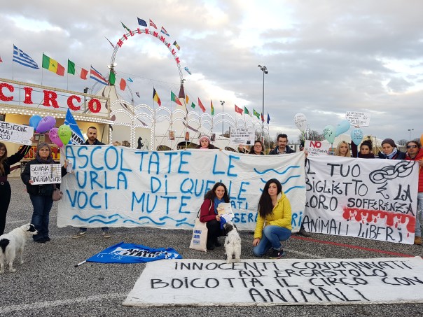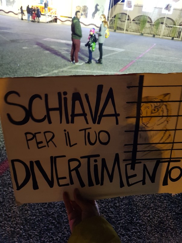 Dalle ore 15.30 alle 18.30 noi attivisti e attiviste provenienti da paesi limitrofi abbiamo esternato il nostro dissenso sull’utilizzo di animali per intrattenimento.