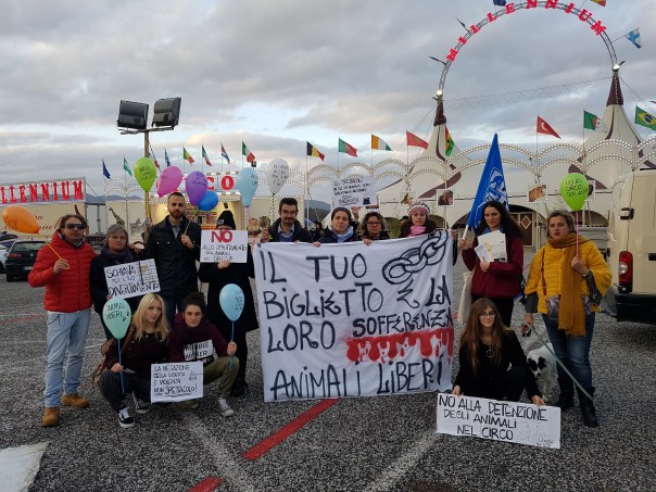 Domenica 23 Dicembre 2018 si è tenuta la manifestazione autorizzata promossa da Think Green • Live Vegan • Love Animals contro il Circo Millennium attendato a Pontedera (Pi).