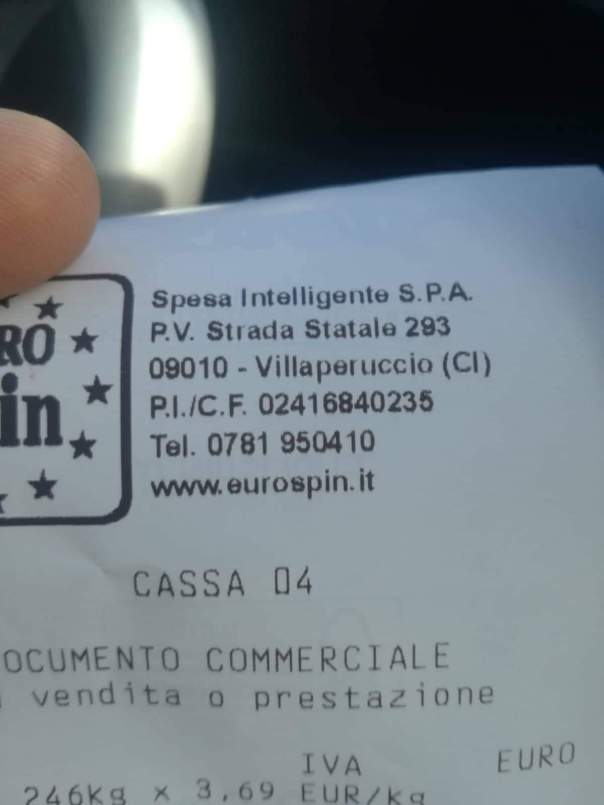 Le foto sono state scattate nel punto vendita Eurospin di Villaperuccio (CI), come dimostrato da prova fotografica dello scontrino.