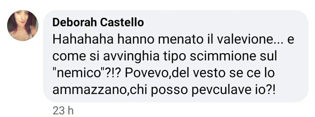 Se non bastavano gli squallidi commenti lasciati da questa gente, arriva poi quello peggiore di tutti di Deborah Castello:
