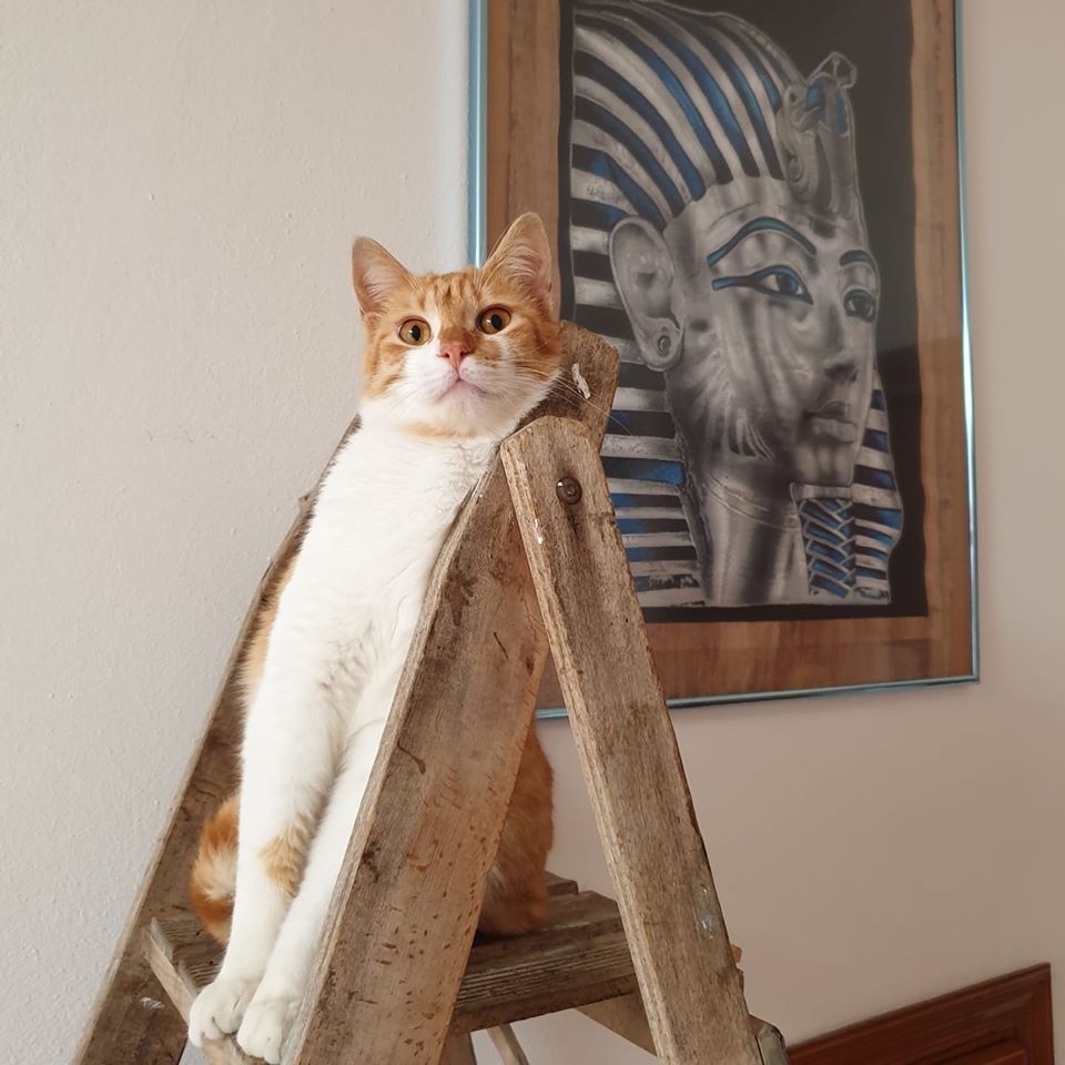 Un micio rosso si affaccia dal muretto. E’ piccolo, esile. Avrà avuto pochi mesi. In modo schivo, standosene sulle sue, segue gli altri gatti che vivono liberi davanti a una casa alle pendici di una montagna. Sembra che qualcuno lo abbia lasciato in strada, ma non si sa chi.