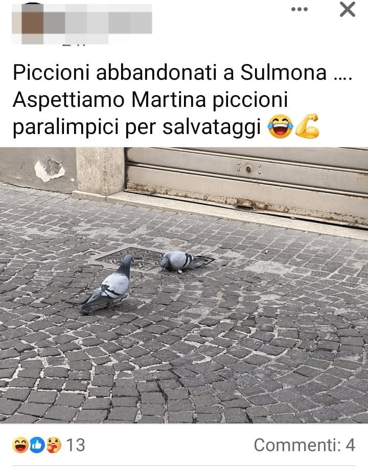 Come spesso accade quando si difende la vita degli animali, qualcuno ha avuto il cattivo gusto di fare ironia sulla nobile attività di volontariato di Martina • Piccioni Paralimpici, definendo “idiozia” il dare voce alle altre specie e facendo battute a doppio senso.