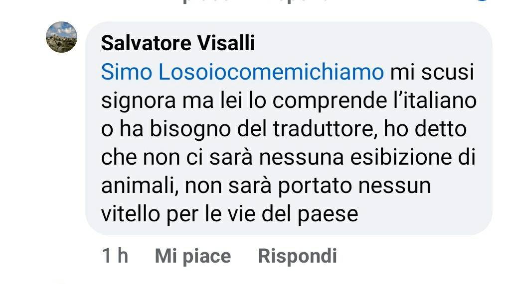 In merito a quanto espresso dal sindaco, aggiungo un ulteriore pensiero nei confronti di questa festa oscena dove si fa pesare agli animali il gravoso fardello delle usanze umane: