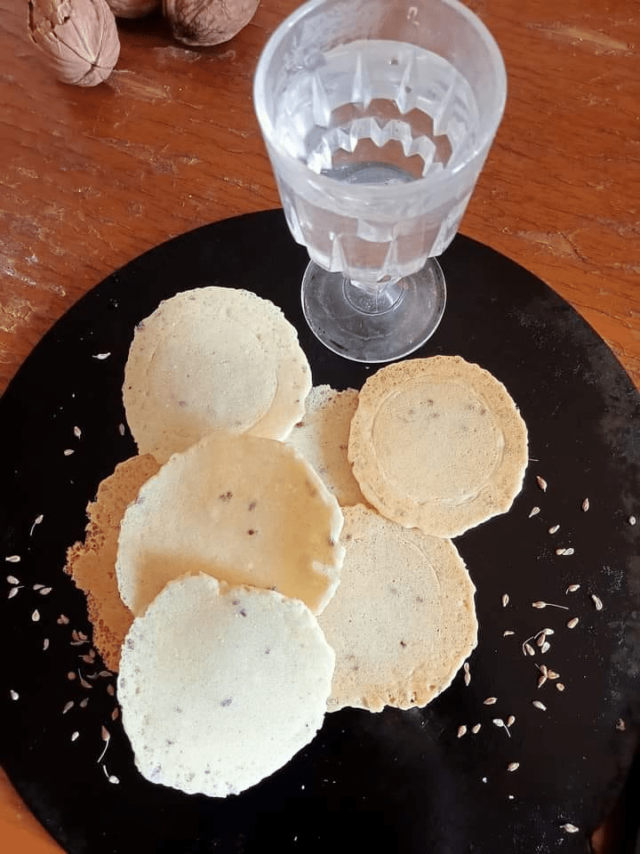 Aspettate 15 secondi di cottura da un lato poi girate i testi in modo che la fiamma riscaldi per quindici secondi anche l’altra parte. Poi girate ancora per 5 secondi e ancora dall’altro lato per 5 secondi. Aprire i testi sovrapposti , troverete il Vrigidino cotto, con un coltello separate il Vrigidino dalla piastra e mettetelo su un piatto ad evaporare. Potete già gustarlo ma per averlo croccante e conservarlo va fatto asciugare e va messo, freddo, in un barattolo di vetro chiuso ermetico in modo che non prenda umidità .