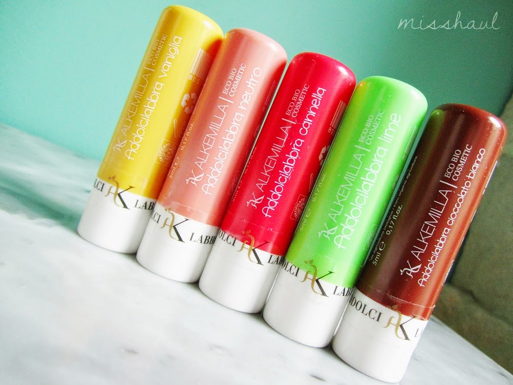 Sono lipstick protettivi biologici, dagli ingredienti vegetali e totalmente vegan dal gusto buonissimo: vaniglia, cannella, lime, cioccolato bianco..