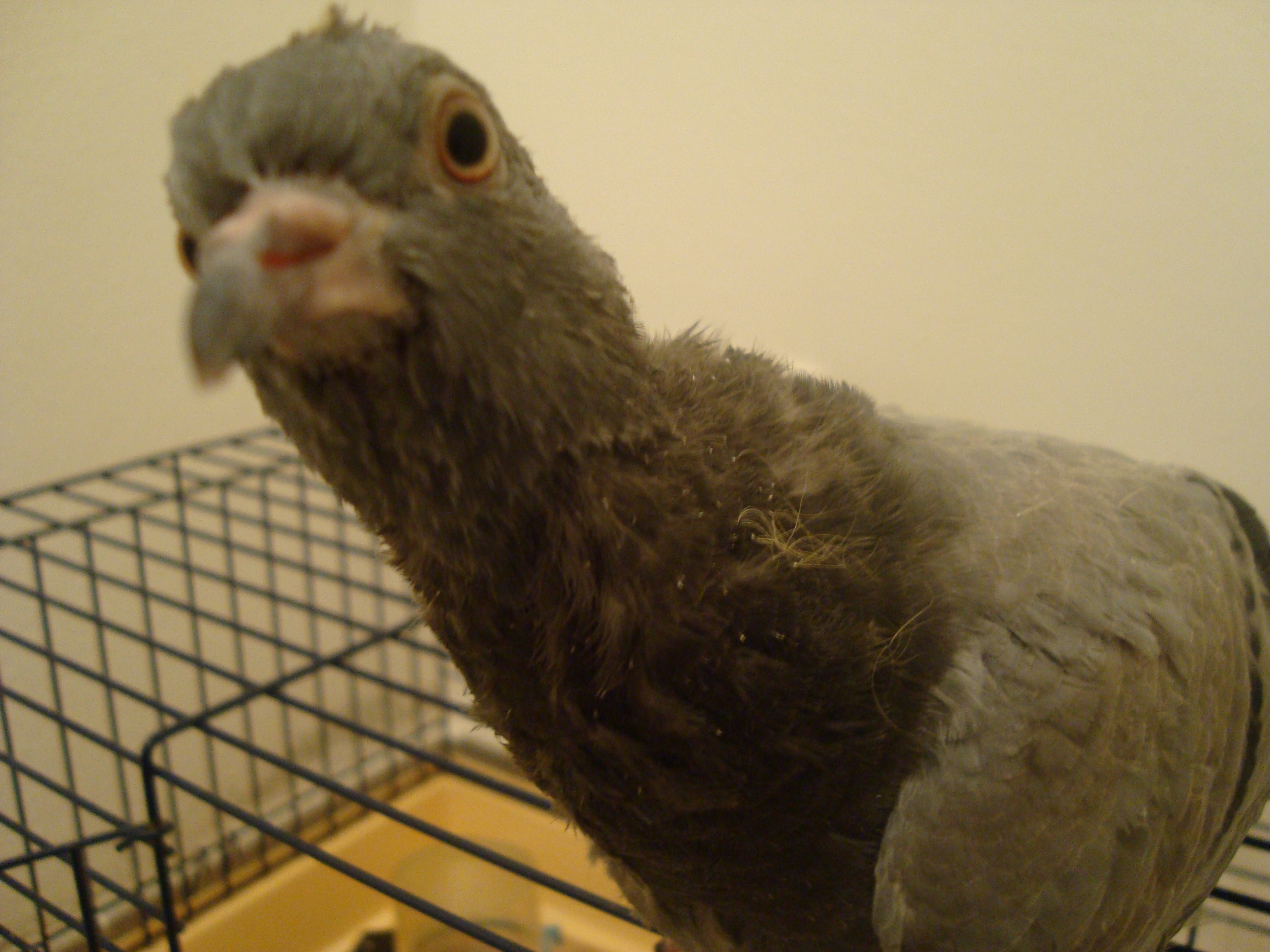 A gennaio ho trovato questo piccione che camminava pericolosamente sulla strada. Stavo per investirlo con l’auto. Fortunatamente ho compreso subito (esaminate le dimensioni delle piume) che era un piccolino caduto dal nido. L’ho portato a casa e l’ho curato come è avvenuto con Ciccio Piccio.