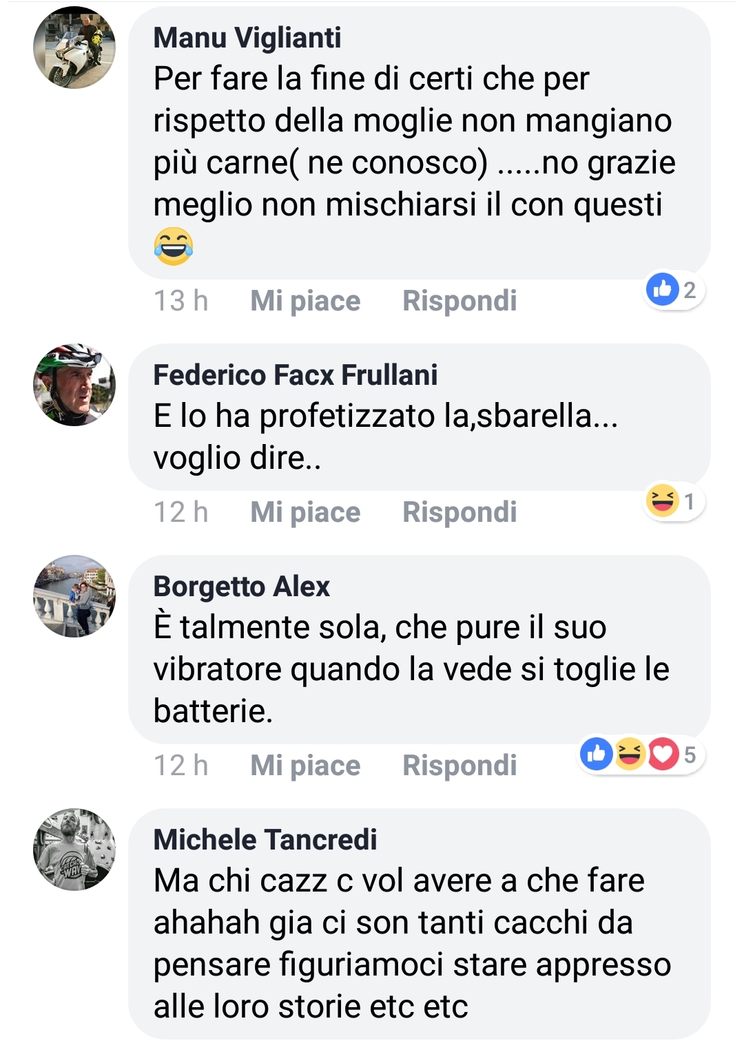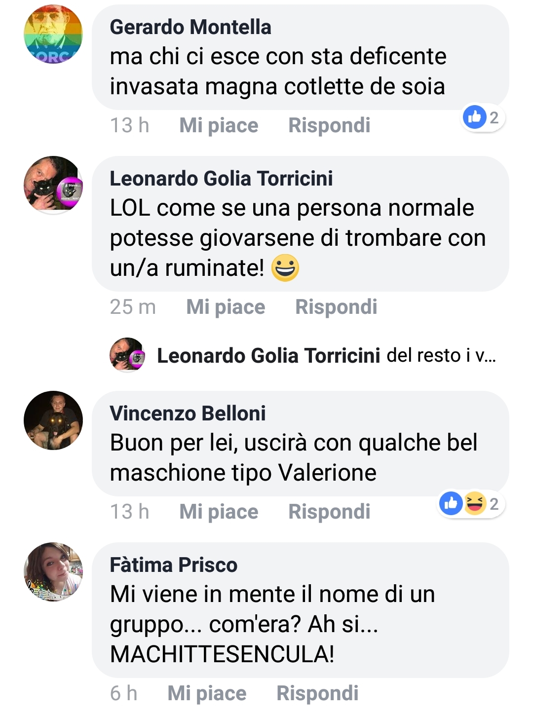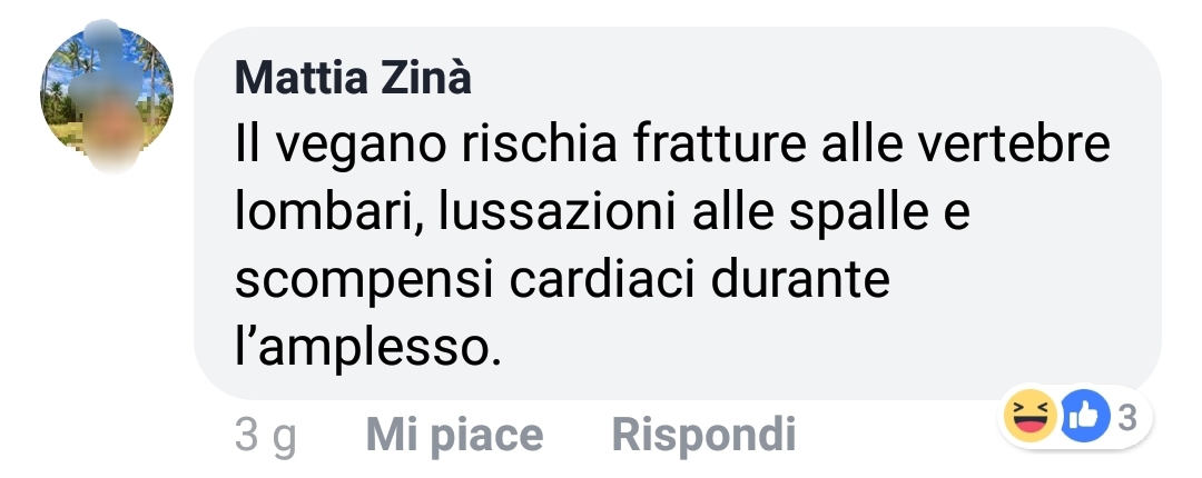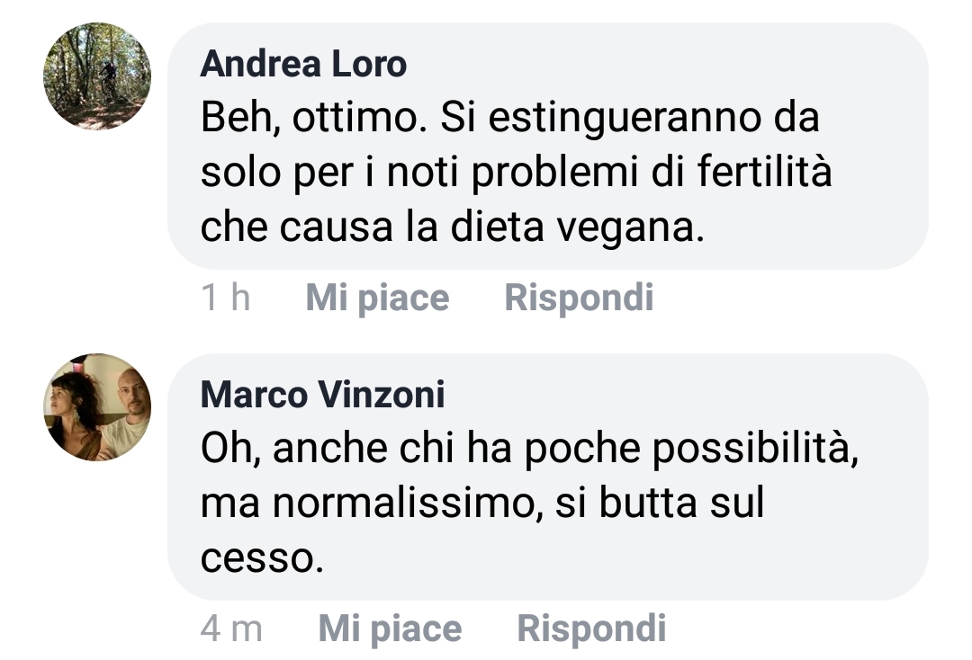I commenti pubblici sono comparsi su una delle tante pagine antivegan che pullulano nel web.