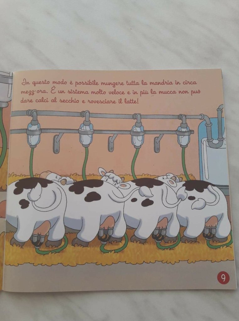 Concludo questo articolo condividendo altre immagini tratte dal libro di De Agostini “I prodotti della Fattoria” – “Il Latte”, con testi che qualcuno ha approvato e accettato venissero pubblicati. Aberrante.