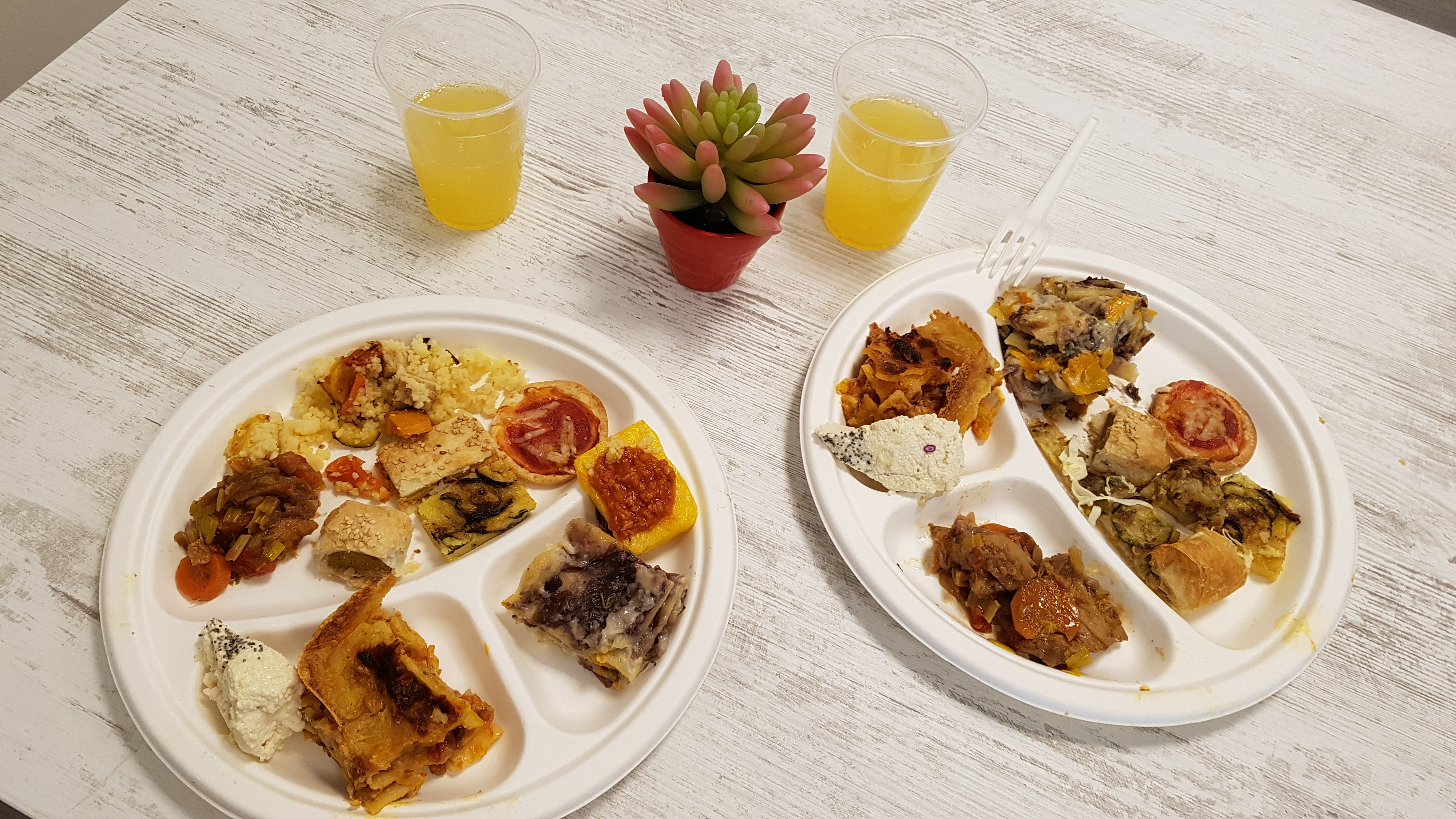 Partecipando all’evento ho avuto il piacere di assaggiare le delizie della nuova cucina: lasagne con ragù di soia o con cicoria e besciamella vegetale, crostini di polenta, spezzatino di seitan, rustici, pizzette e tanto altro. Tutto squisito!