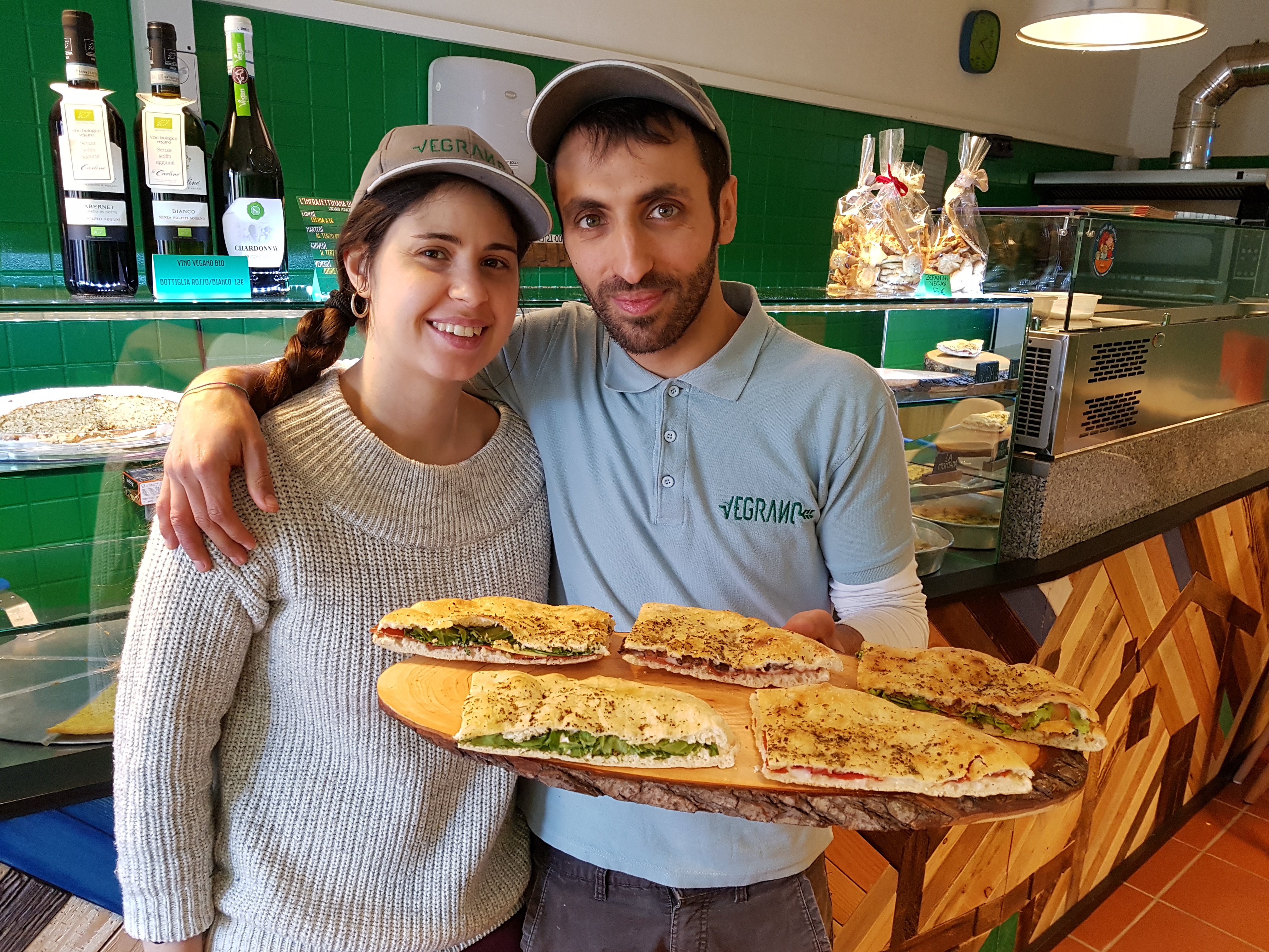 Entrambi molto simpatici e disponibili, accolgono i clienti dal retro di un bancone ricco di cibi realizzati con ingredienti esclusivamente vegetali delle migliori marche.