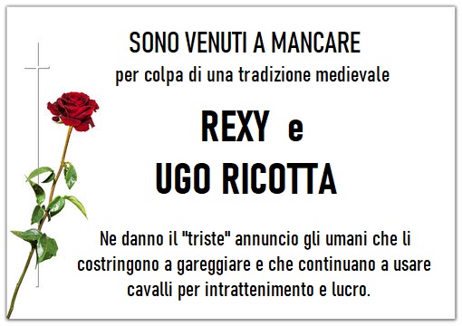 la presente email è per esternarvi tutta la mia indignazione sull’utilizzo dei cavalli in occasione del Palio di Fucecchio. Nel 2021 sono morti due esemplari durante le prove generali, Rexy e Ugo Ricotta. Quest’ultimo col collo spezzato. Negli anni precedenti altri ancora, come il cavallo Ora Basta nel 2014.