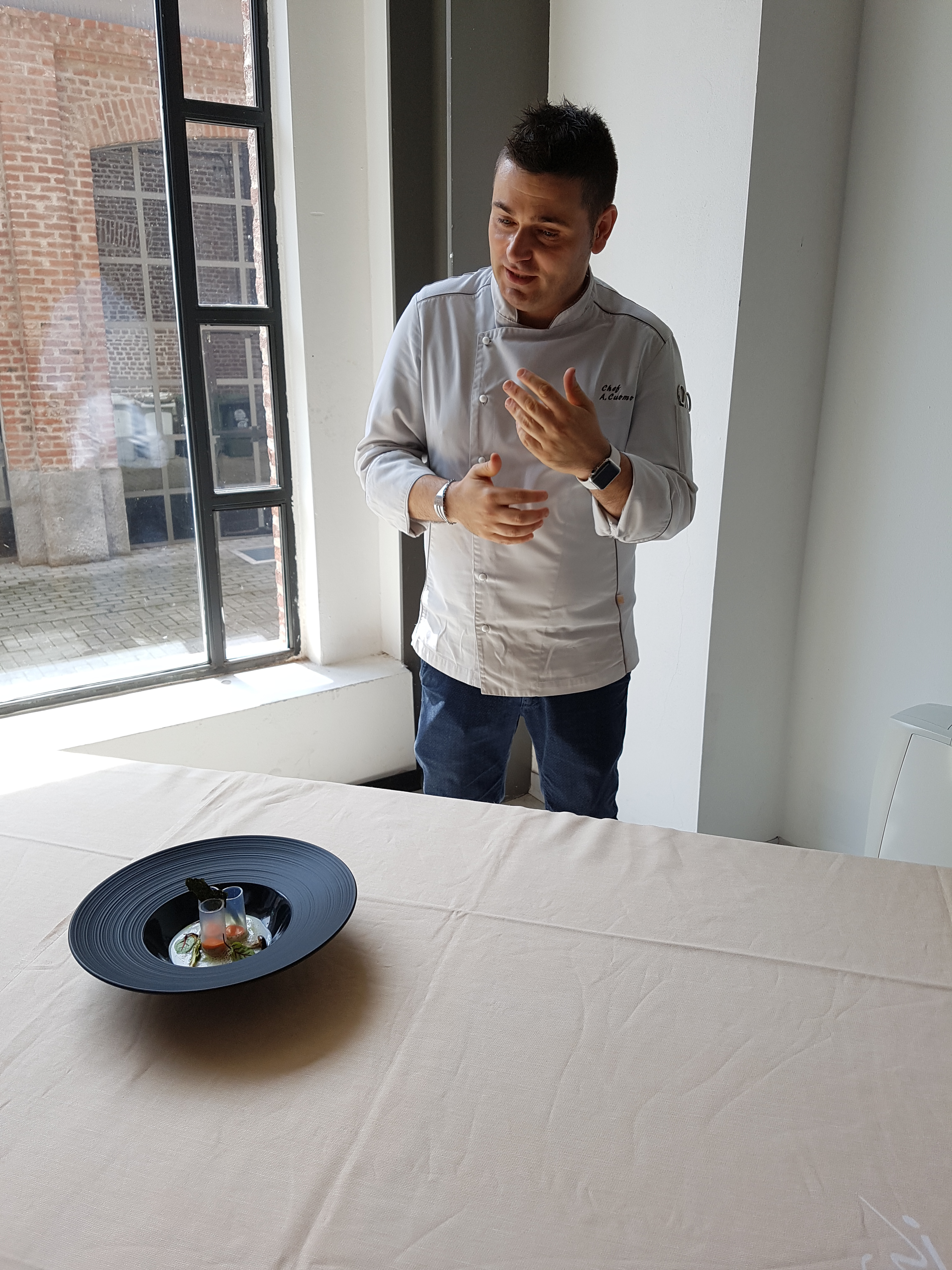 • Antonio Cuomo (Italia) chef del Ristorante Relais San Lorenzo di Bergamo ha proposto una pasta e fagioli con albicocche e basilico, e come secondo piatto uno creativo chiamato “a me che non piace il sushi”. Bellissimo con le sue “candele” di agar agar commestibili.