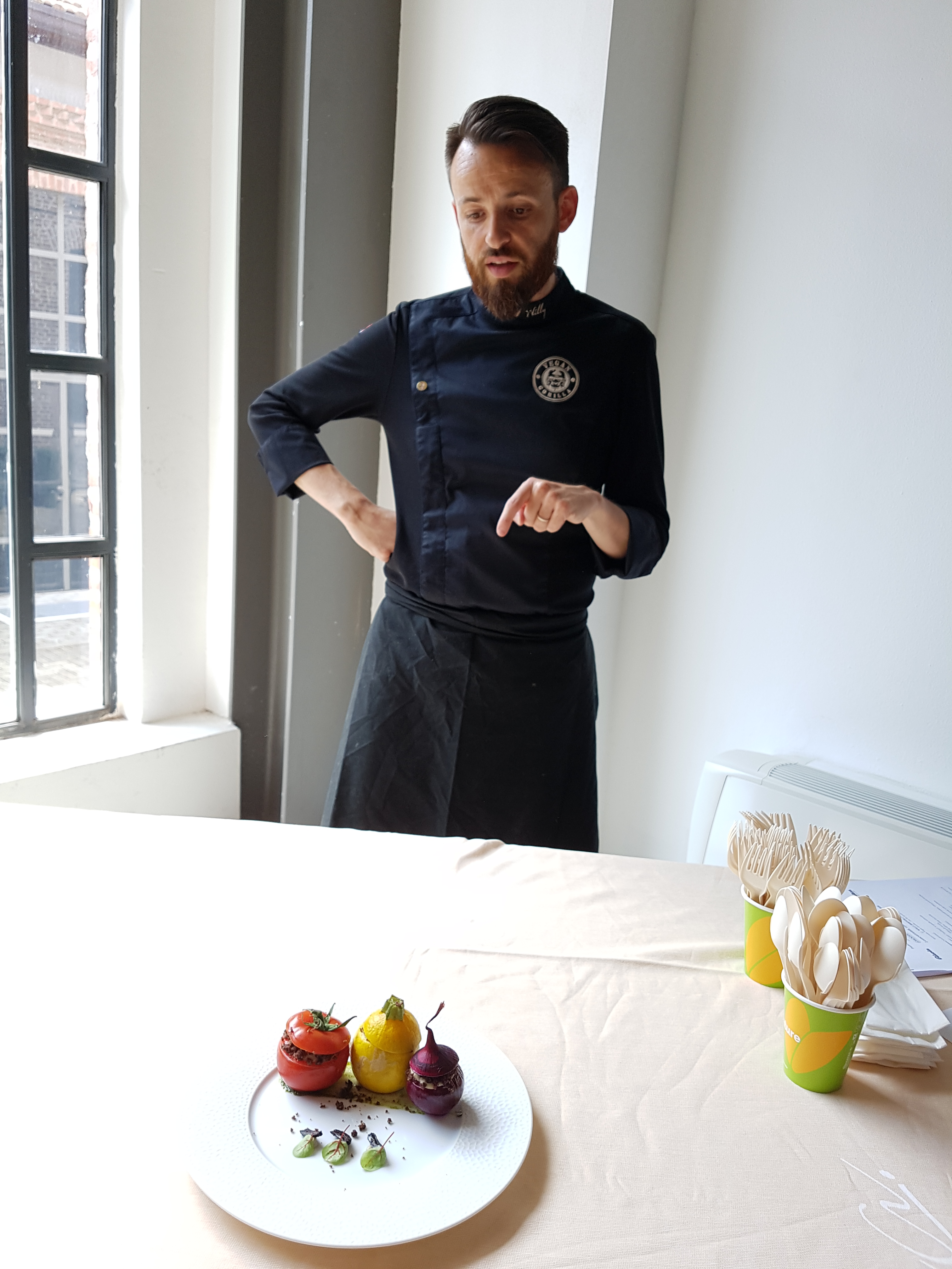 • Willy Berton (Francia) chef del ristorante vegan Gorilla di Nizza ha proposto invece un piatto di ortaggi ripieni e uno di rigatoni di primavera.