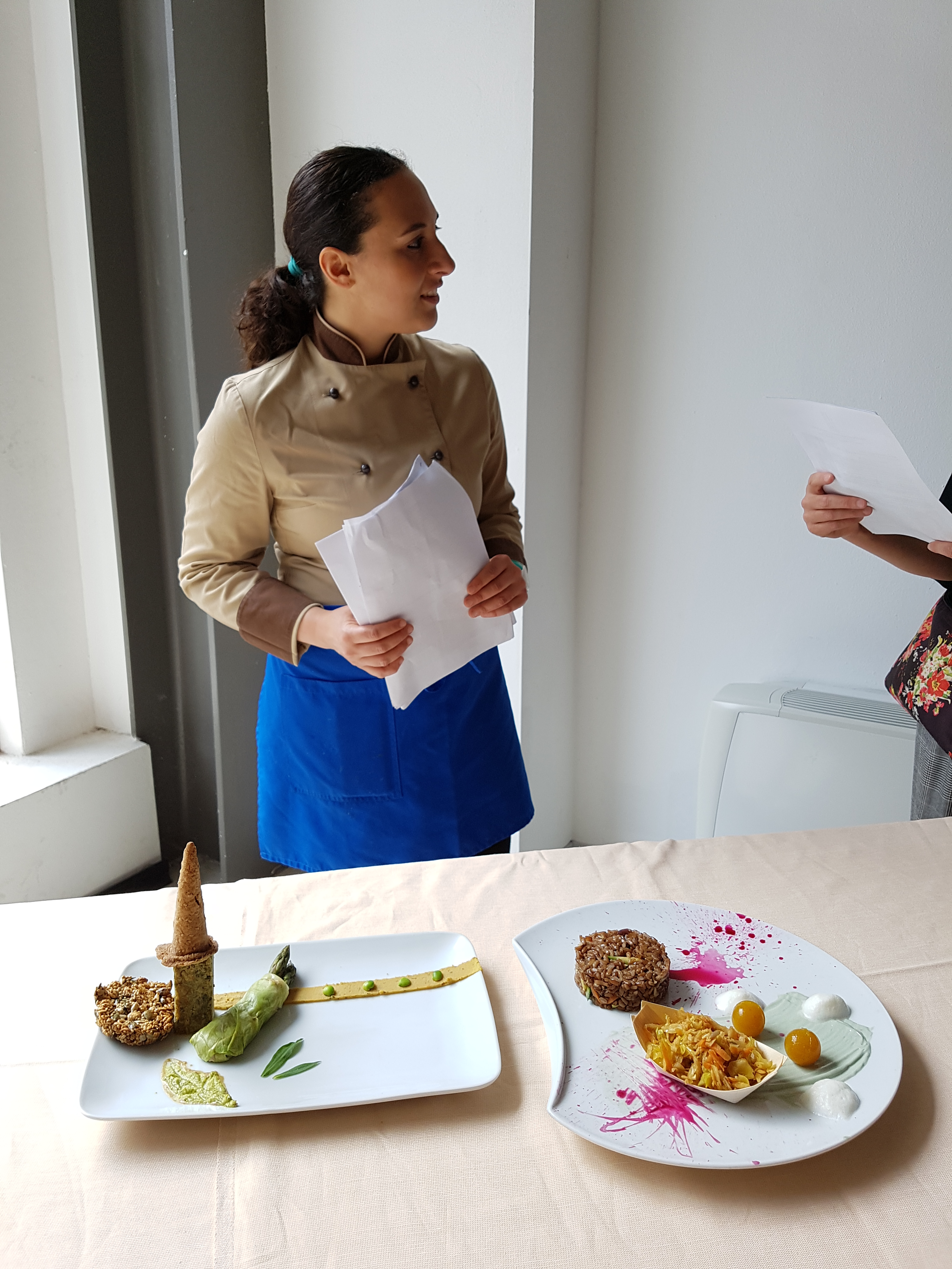 “Vengo da un paese dove la cultura alimentare si basa sul consumo di animali e derivati. Col mio lavoro cerco di portare un messaggio positivo per le persone e gli animali. Ho realizzato un piatto che richiama Cremona in modo utopico. Mi sono ispirata a Dalì e a Pollock nel secondo piatto” ha detto la chef.