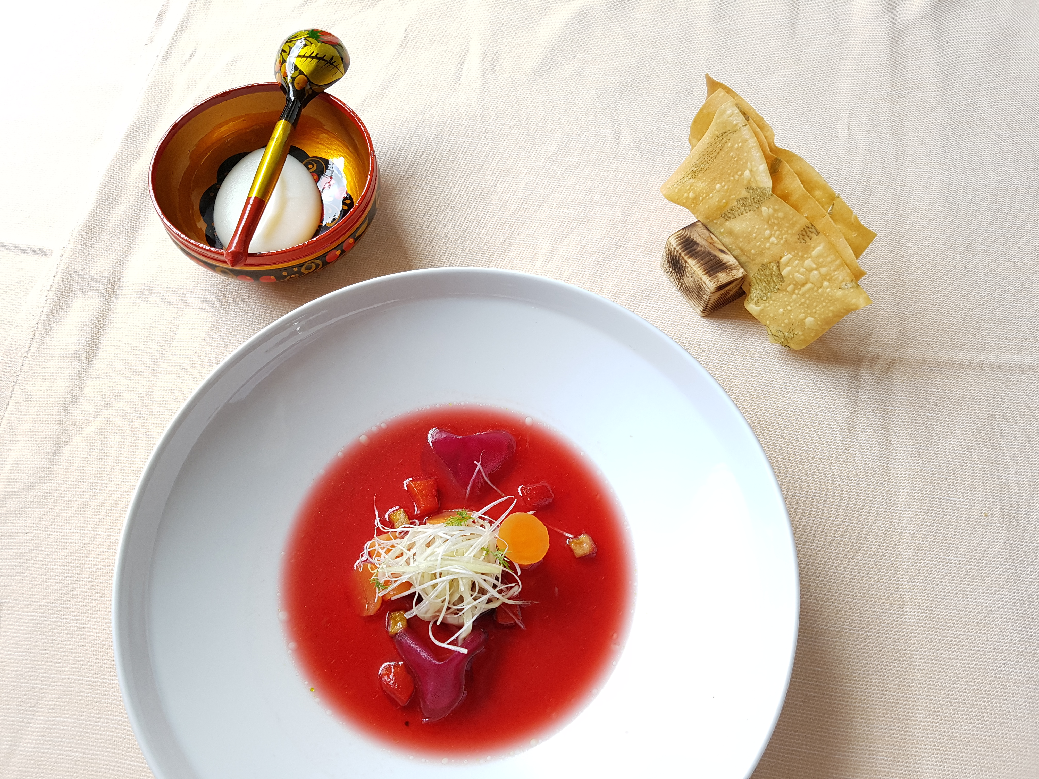“In Russia il vegetarismo è poco diffiso. Il vecchio regime purtroppo ha standardizzato la cucina eliminando piatti poveri della cucina locale dove prevalevano i vegetali. Vi è un alto consumo di carne che viene accompagnata alle verdure, viste come alimento per poveri. Ho chiamato uno dei piatti ‘della quaresima’ perché tale giornata in Russia prevede solo cibi vegetali” ha spiegato lo chef.