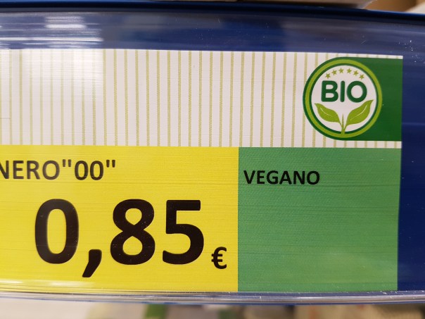 Addirittura sul cartellino della farina bio di grano tenero ho trovato la dicitura “vegan“.