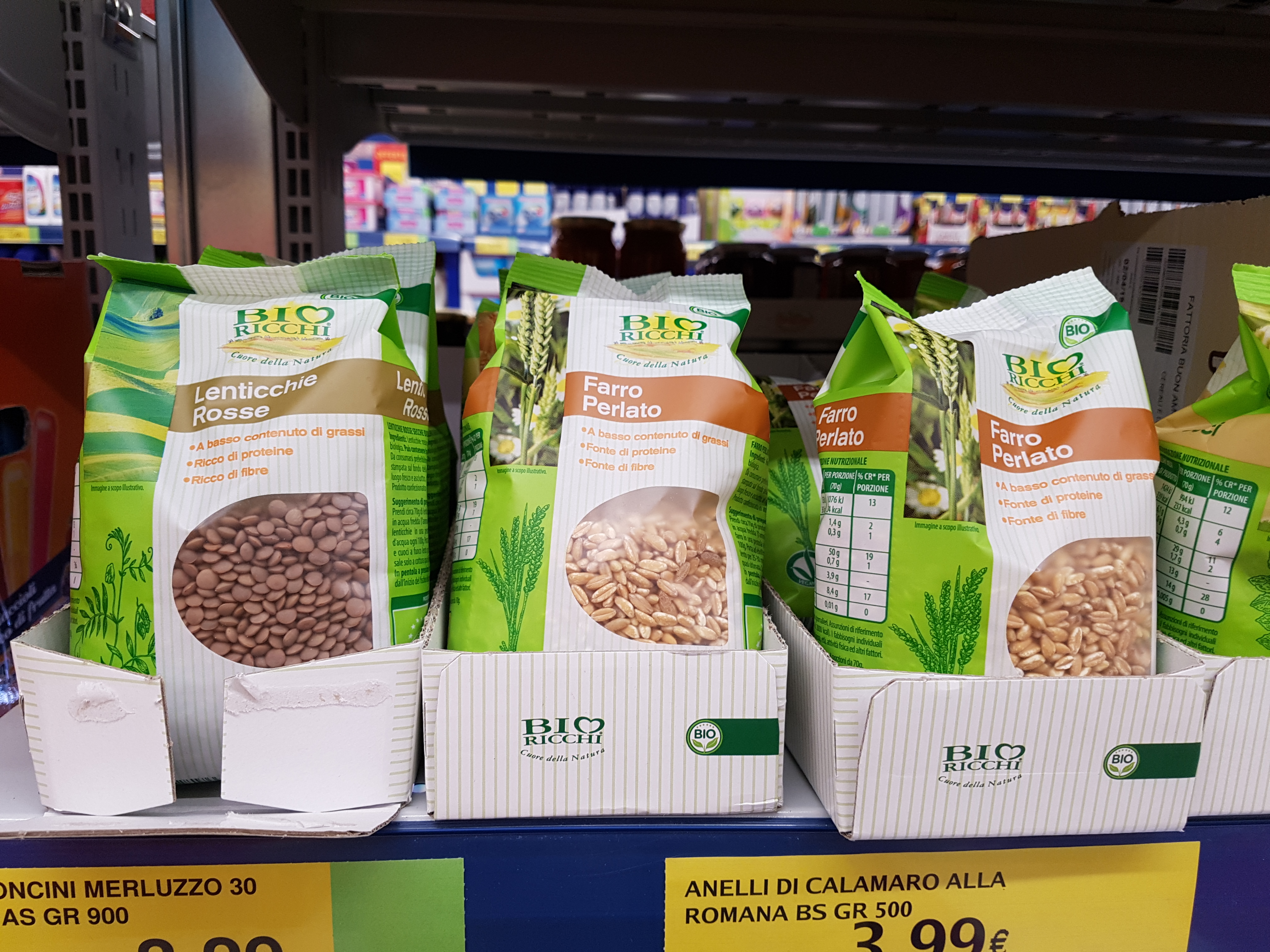 Per la preparazione di primi e secondi ho trovato invece molte opzioni fra cereali in chicco, pasta e mix di legumi, quasi tutti da agricoltura biologica.