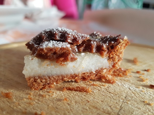 Procedimento: preparate la frolla inserendo in una ciotola la farina, il cacao e il lievito secco. In un secondo recipiente versate l’olio, lo sciroppo di agave e il latte vegetale. Versate gli ingredienti liquidi su quelli secchi e mescolate con un cucchiaio e successivamente lavorate l’impasto con le mani. Dopo aver ottenuto un panetto morbido, passate alla crema al cocco.